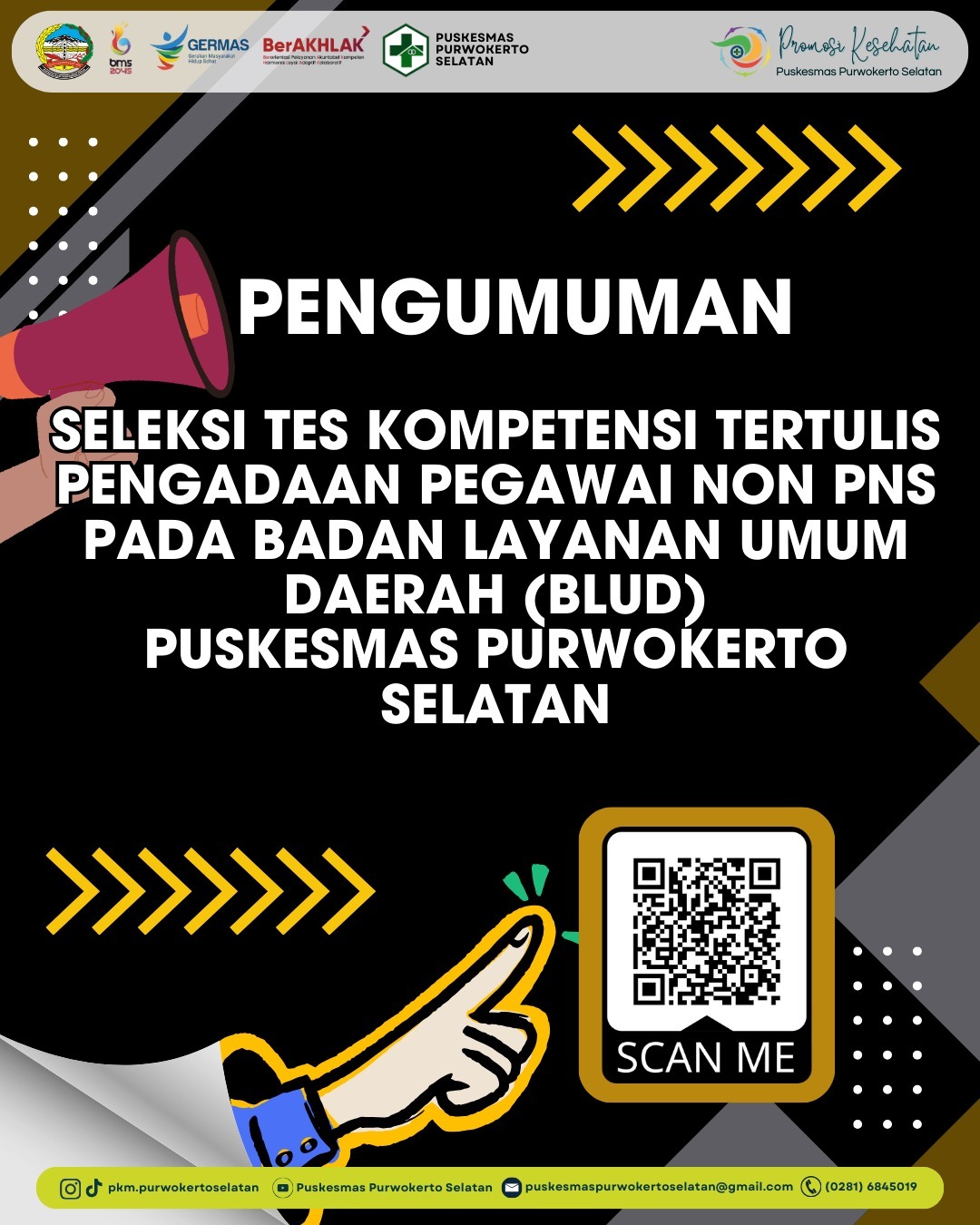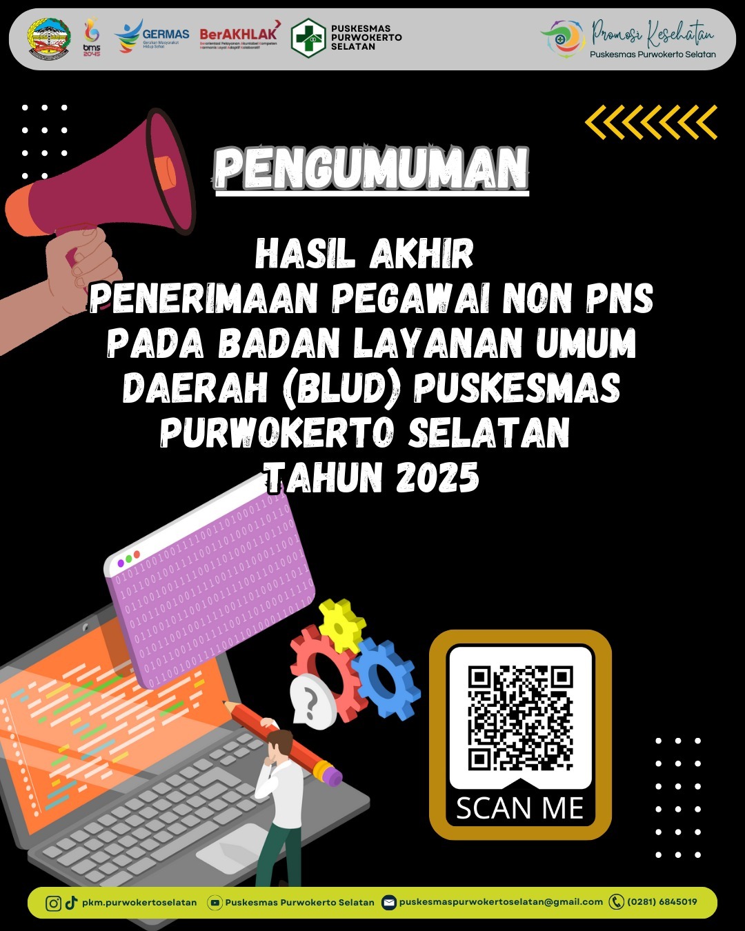 Pengumuman Hasil Seleksi Administrasi Pengadaan BLUD Puskesmas Purwokerto Selatan Rabu, 17 Desember 2025